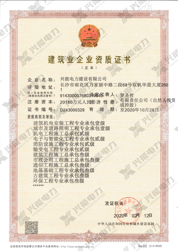 建筑機電安裝工程專(zhuān)業(yè)承包一級、城市及道路照明工程專(zhuān)業(yè)承包一級、機電工程總承包二級