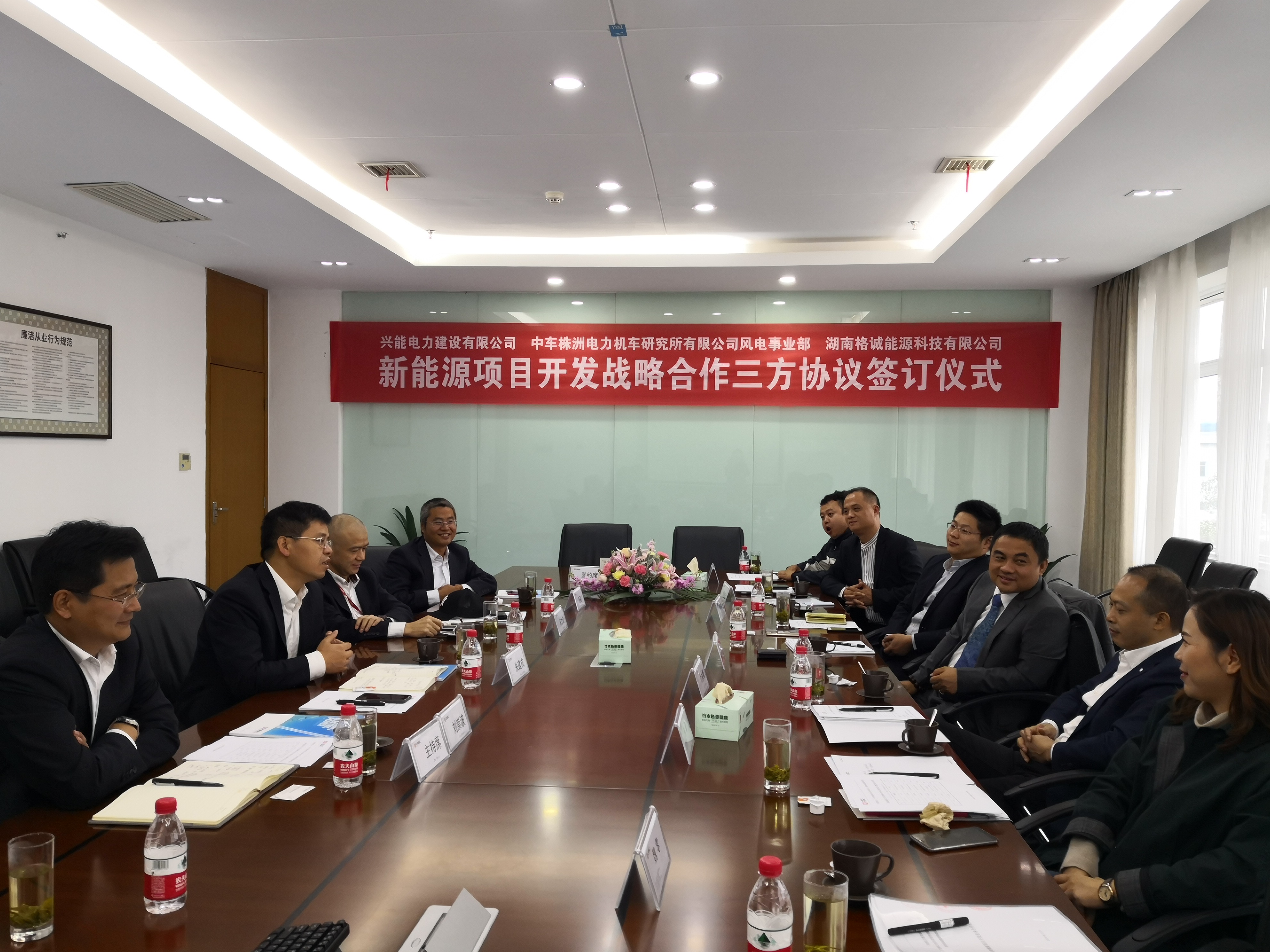11月7日上午,興能電力建設有限公司、中車(chē)株洲電力機車(chē)研究所風(fēng)電事業(yè)部、湖南格誠能源科技有限公司新能源項目開(kāi)發(fā)戰略合作三方協(xié)議在中車(chē)株洲電力機車(chē)研究所風(fēng)電事業(yè)部正式簽訂。
