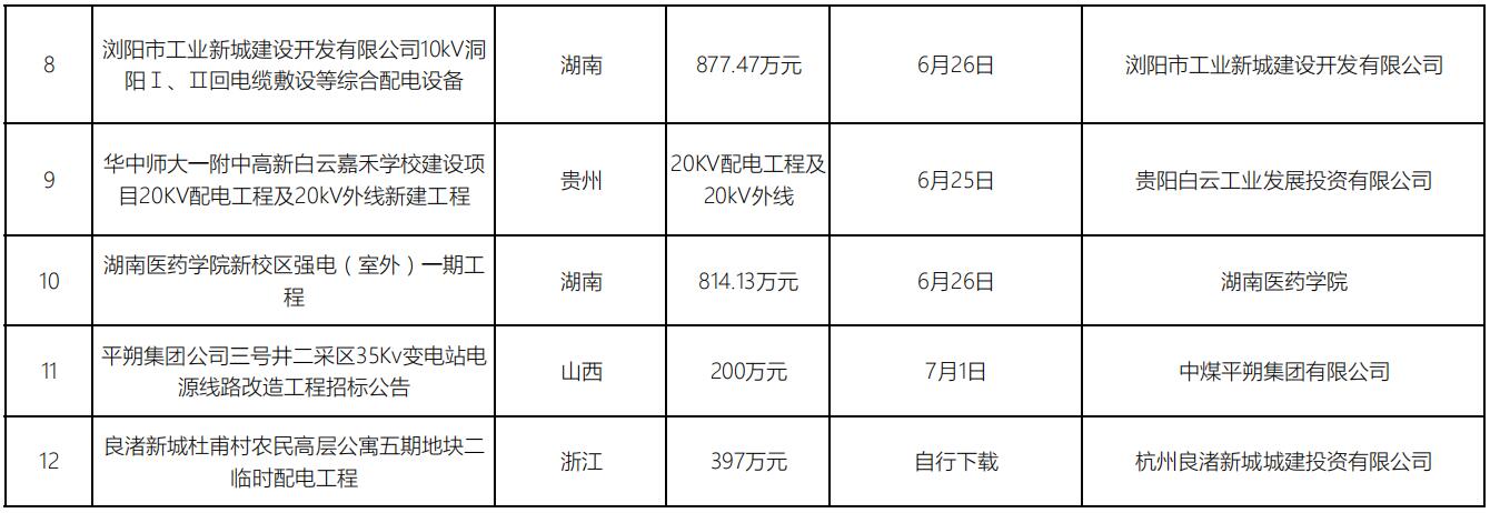 招標信息丨電力工程項目(6月第3期)