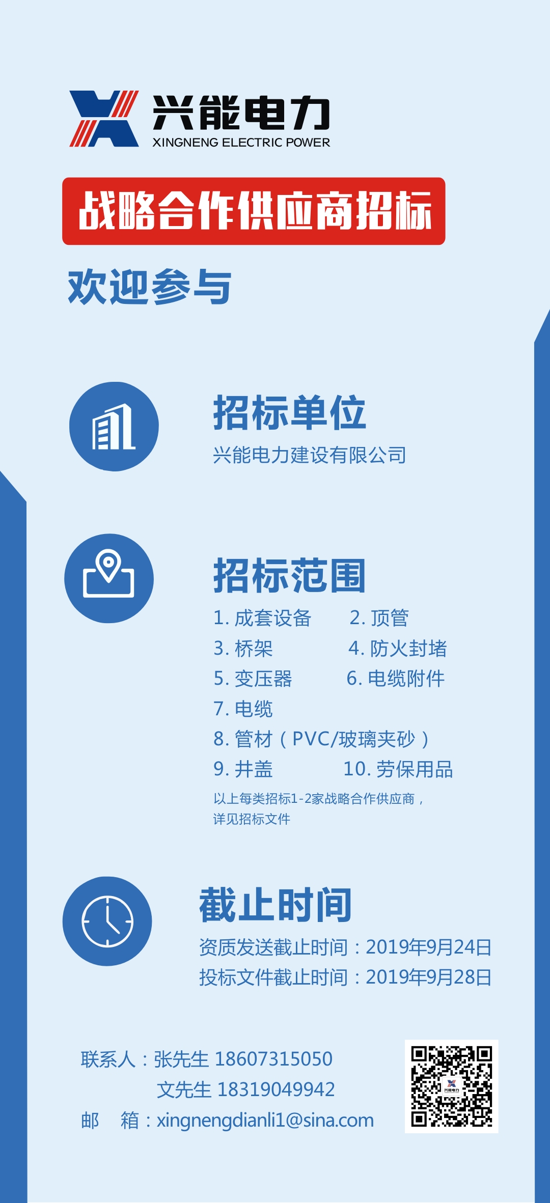 項目名稱(chēng):戰略合作供應商招標-2019年9月興能電力建設有限公司