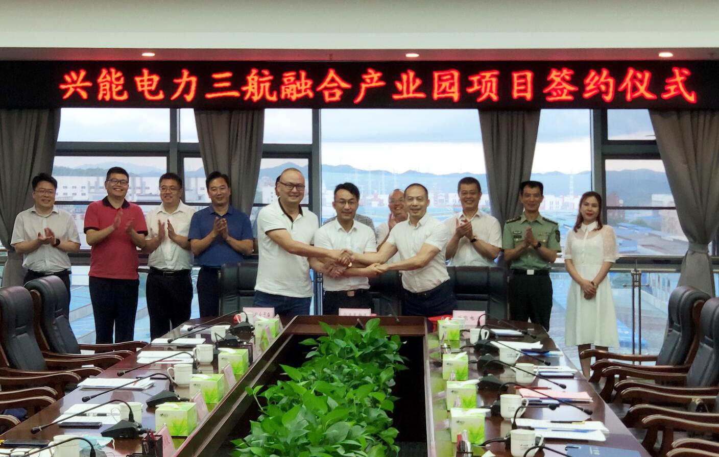 在與會(huì )人員的共同見(jiàn)證下,寧鄉高新區黨工委副書(shū)記、管委會(huì )主任蘇繼桃、興能電力建設有限公司董事長(cháng)劉永青、湖南三航融合發(fā)展科技有限公司董事長(cháng)江巒簽訂了中部軍民融合電力產(chǎn)業(yè)園項目合作協(xié)議。