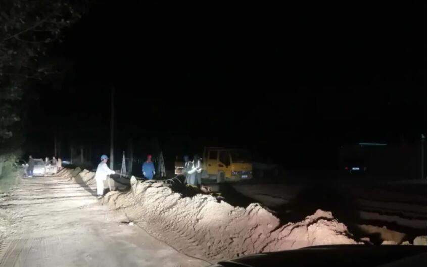 2020年10月7日,C27箱變開(kāi)始了電纜敷設。本次敷設開(kāi)挖的道路正是風(fēng)場(chǎng)塔筒、葉片等設備運輸的必經(jīng)之路,為了避免影響整個(gè)風(fēng)電項目的搶裝進(jìn)度,項目部決定通宵把這條電纜敷設完成。