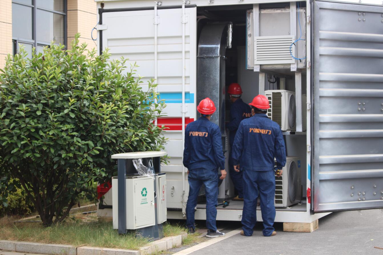 8月4日中午12點(diǎn),興能電力工作人員在方艙檢測室外集結完畢。經(jīng)過(guò)認真勘察周邊線(xiàn)路設備供電條件、測算負荷、確定電源點(diǎn)……僅用半小時(shí)就迅速制定了最優(yōu)的供電方案。
