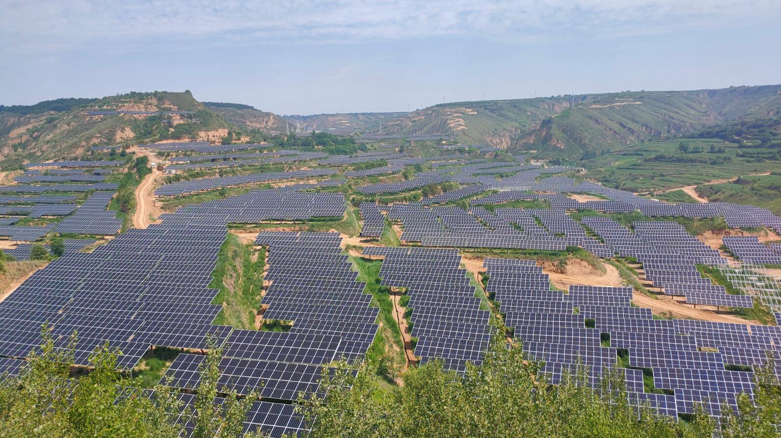 如今昔日的黃土大溝已大變樣,藍天白云下,高低錯落的山坡上,幾萬(wàn)片藍色光伏板沿山坡斜鋪開(kāi),已然成為了黃土高坡上一道獨特美麗的“藍色海洋”。